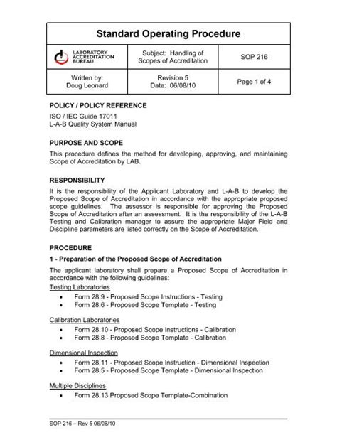 Standard Operating Procedure Example Template Business from nationalgriefawarenessday.com