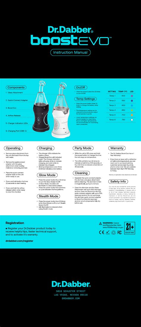 Dr Dabber Boost Evo Manual. Ergonomically friendly, it has a long battery life, heats up in 11 seconds,. Feel free to check out our instruction videos by visiting our dr.